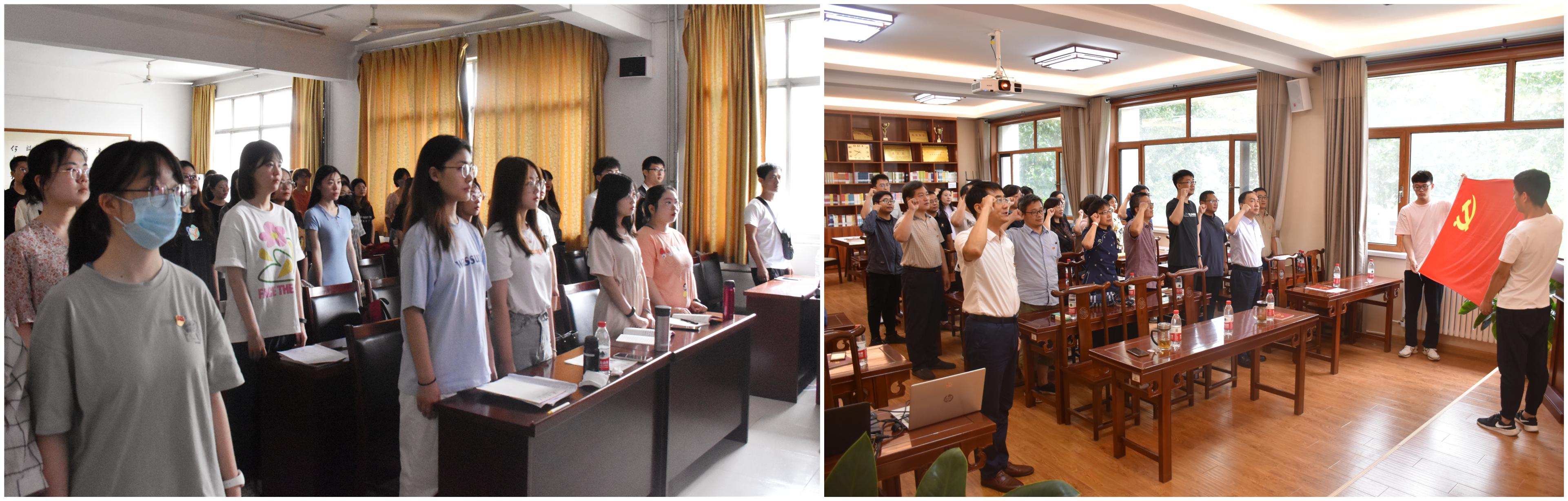 观看结束后,全体党员怀着激动的心情在学院党委书记陈卫东的带领下重温入党誓词。